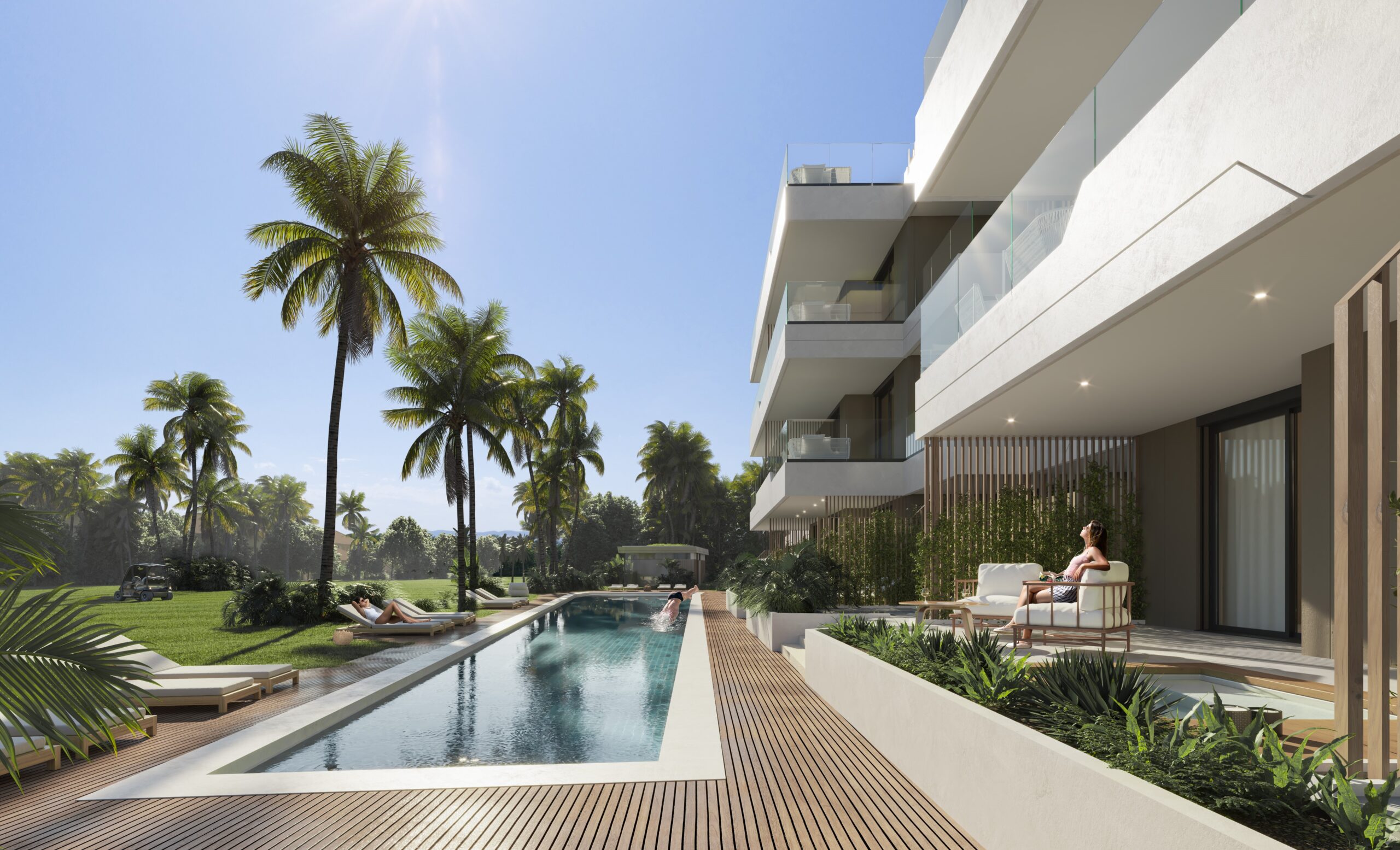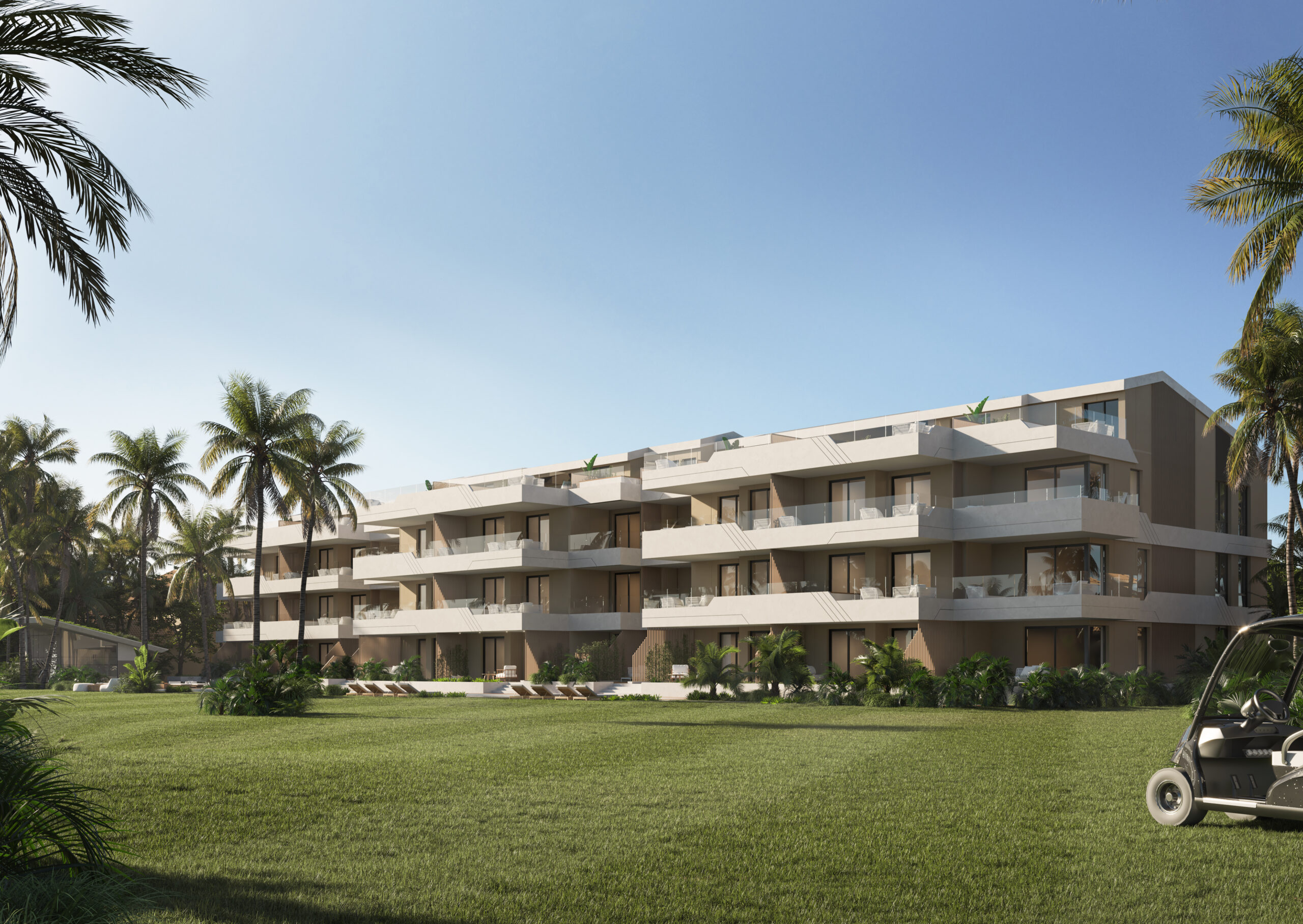 El conjunto está formado por 36 viviendas con amplias terrazas, todas orientadas al golf, integradas en un entorno verde y cuidadosamente diseñado para maximizar la privacidad, la luz natural y la conexión con el paisaje.